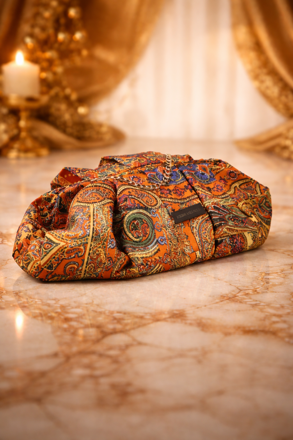 Borsa di piccole dimensioni con cerniera invisibile realizzata interamente in seta . Definita da una silhouette stondata, questa borsa con tracolla removibile in oro permette di indossare questo accessorio in più modi per enfatizzarne l'allure preziosa.