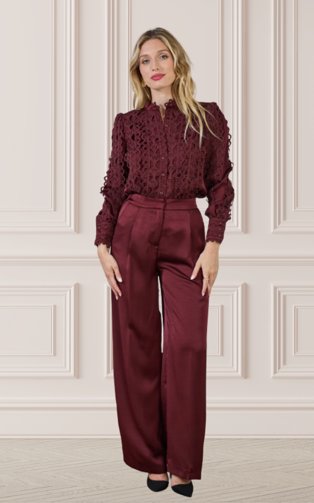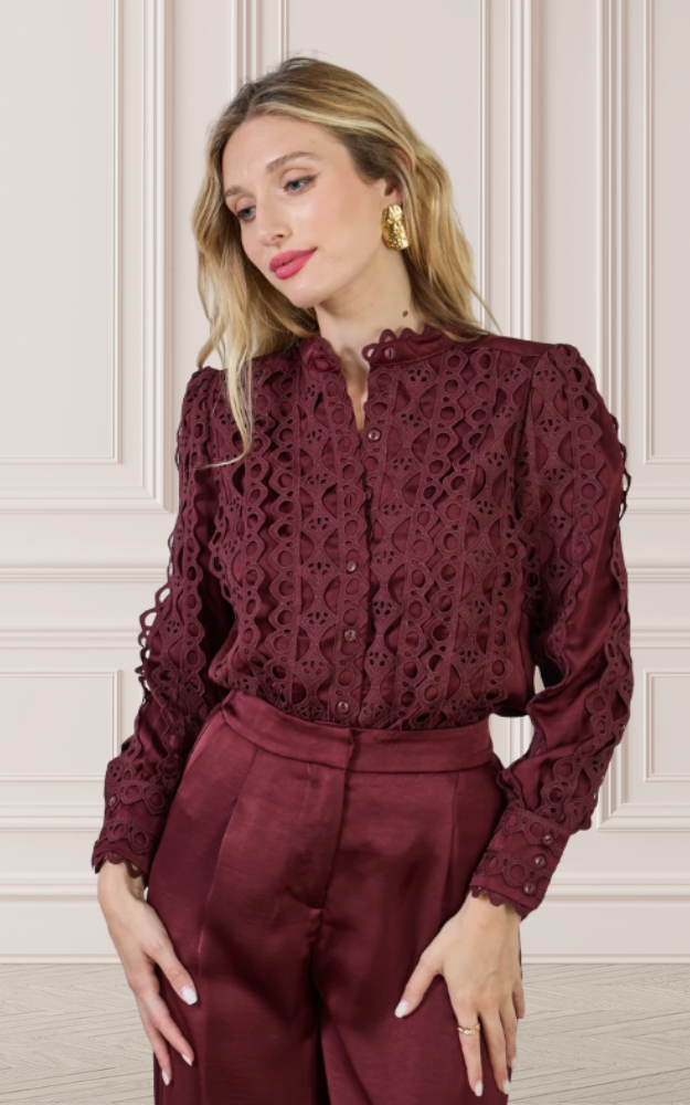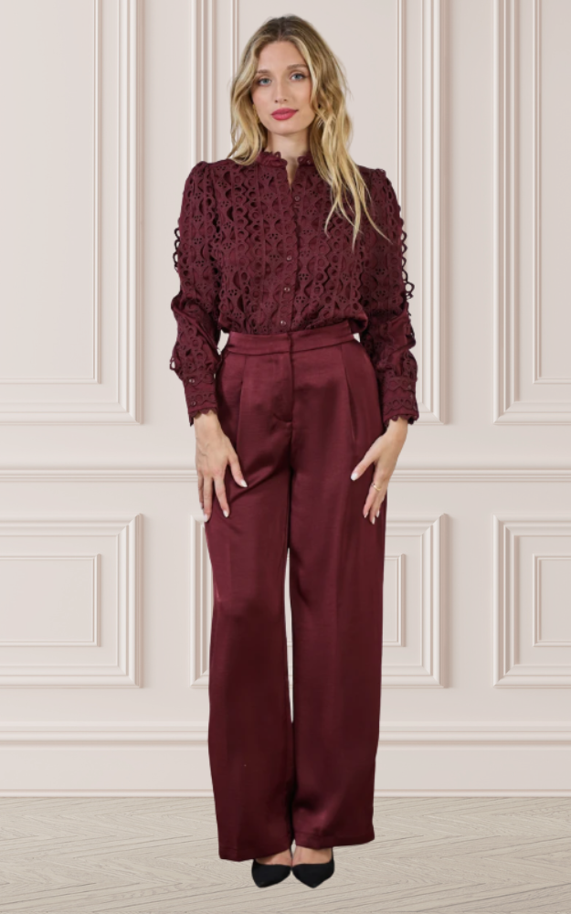 La Camicia Amy combina la fluidità del raso con la raffinatezza del pizzo traforato che decora il davanti e le maniche, donando un tocco sofisticato e femminile. Il tessuto leggero assicura comfort e movimento, mentre i dettagli sartoriali ne esaltano l’eleganza senza tempo.