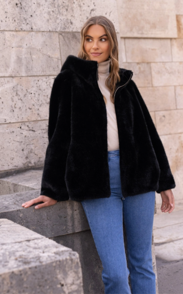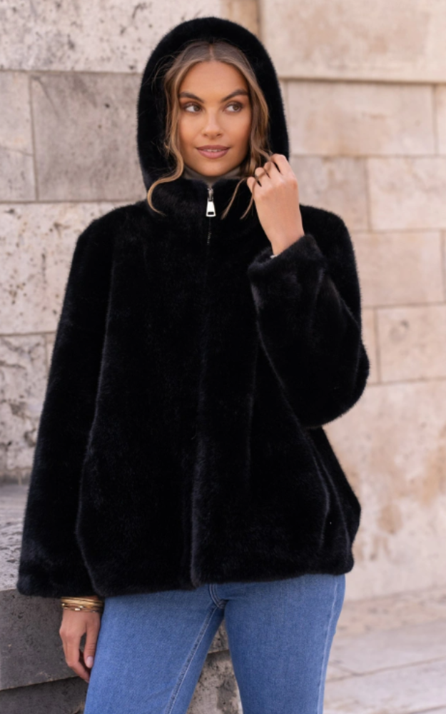 Il Cappotto Alessandro è un capo corto in pelliccia sintetica che unisce morbidezza, calore e praticità. Il suo design con cappuccio lo rende perfetto per affrontare le giornate più fredde con stile rilassato e contemporaneo, mentre la linea pulita e il volume soffice donano un’allure moderna e versatile. Un alleato confortevole da indossare sia con look casual che con outfit più sofisticati.