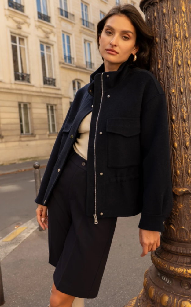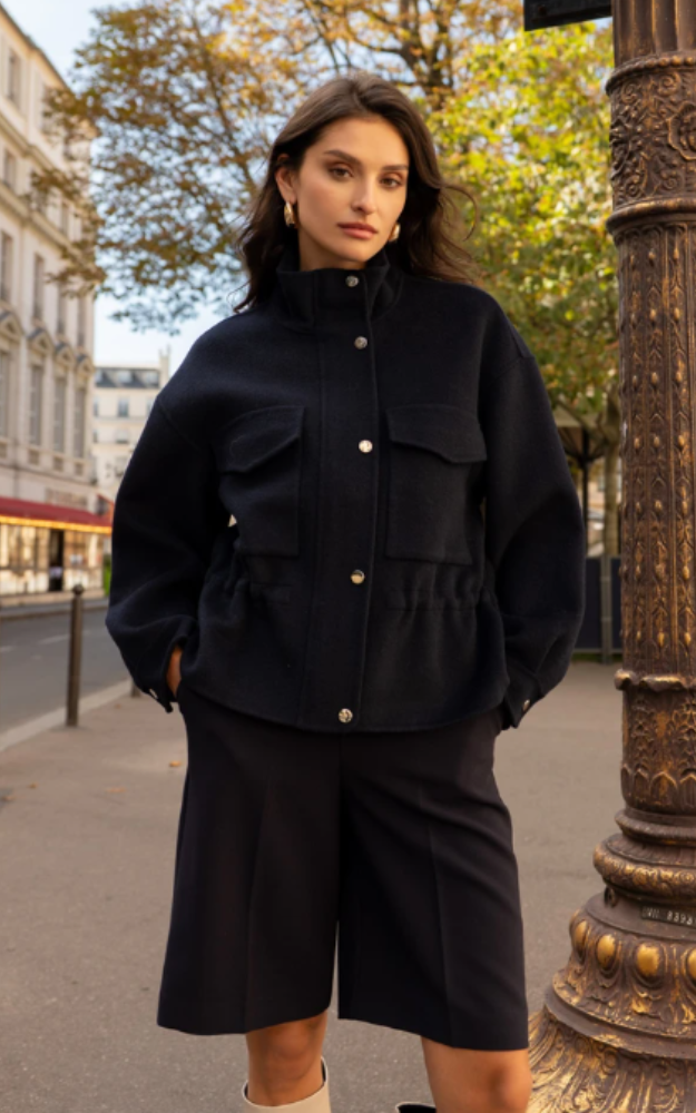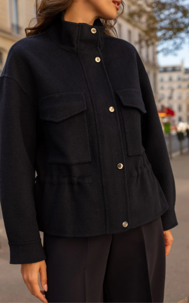 Cappotto elasticizzato fatto a mano in misto lana. Un capo dallo stile casual chic che combina praticità ed eleganza, perfetto per le giornate fresche. Il collo alto e le maniche lunghe regalano protezione e comfort, mentre le tasche oversize e il laccio elasticizzato in vita definiscono una silhouette moderna e strutturata.