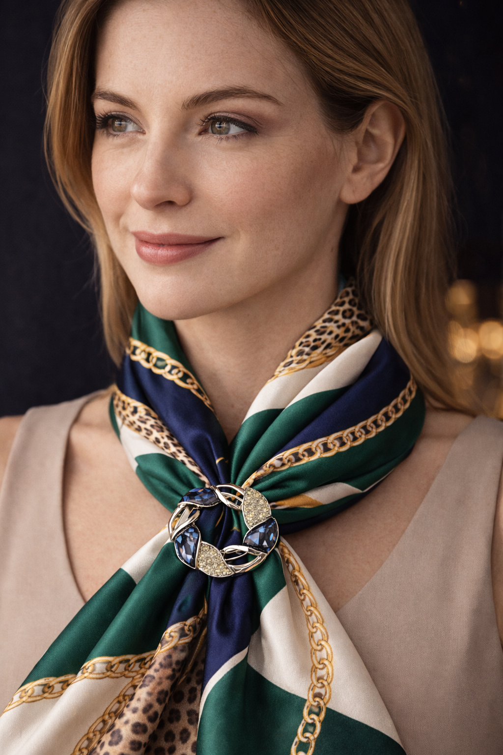 Un accessorio ricercato di cui non potrai farne a meno. Elegante e alla moda è un gioiello Ornamentum su base metallo impreziosito da zirconi .Perfetto per impreziosire i tuoi look . Dotato di chiusura a scatto per permettere di indossare il foulard in svariate forme. Made in Italy.