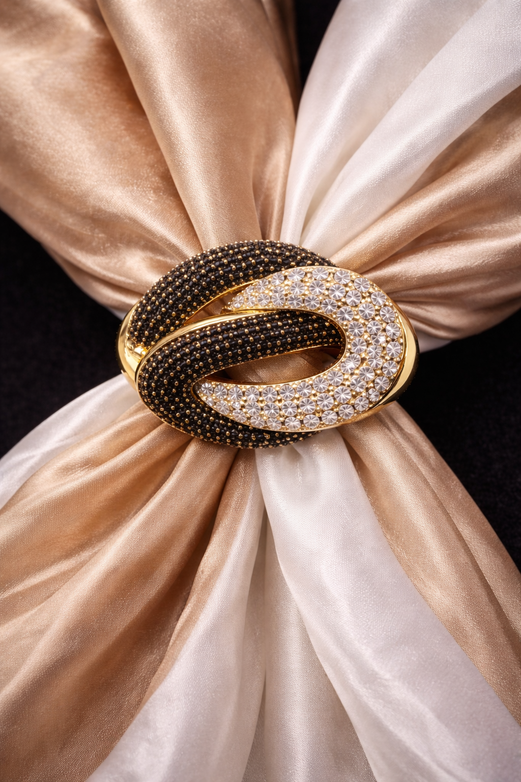 Un accessorio ricercato di cui non potrai farne a meno. Elegante e alla moda è un gioiello Ornamentum su base metallo  impreziosito da zirconi .Perfetto per impreziosire i tuoi look . Dotato di elastico interno per permettere di indossare il foulard in svariate forme. Made in Italy.