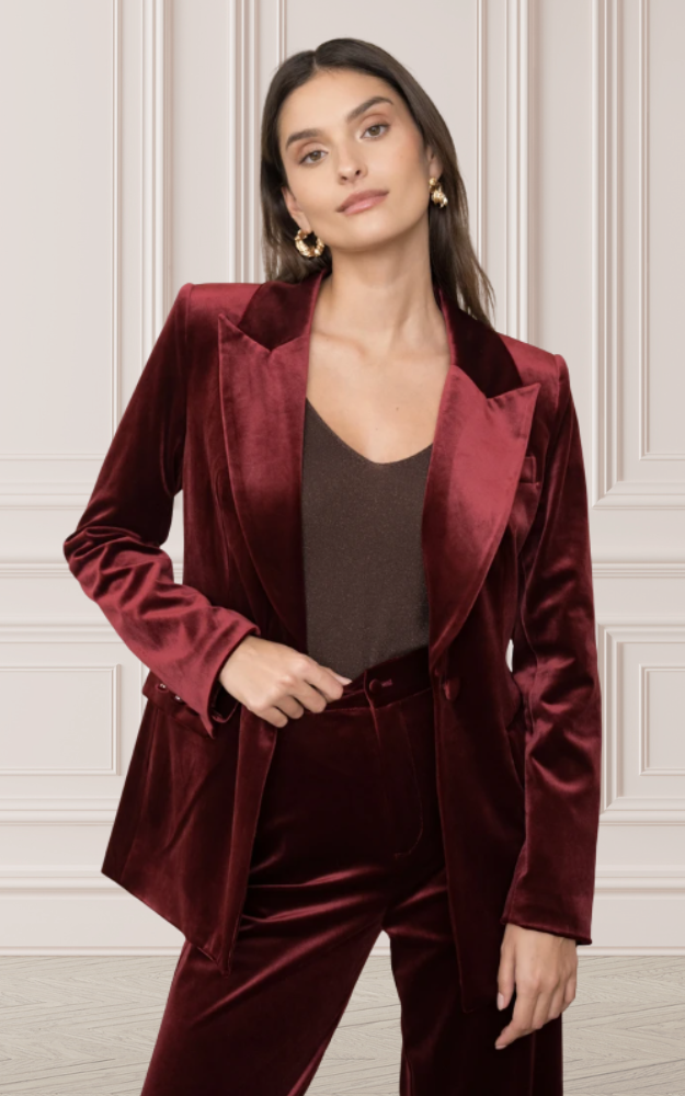 Raffinato, luminoso e dal taglio impeccabile, il blazer Angela è un classico intramontabile reinterpretato in chiave contemporanea. Realizzato in velluto morbido e corposo, segue la linea del corpo con eleganza grazie al taglio attillato e strutturato. La chiusura con bottone centrale rivestito e i dettagli sartoriali lo rendono un capo versatile, perfetto per completare look da giorno o da sera.