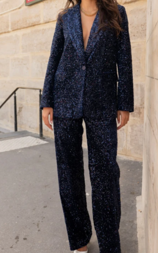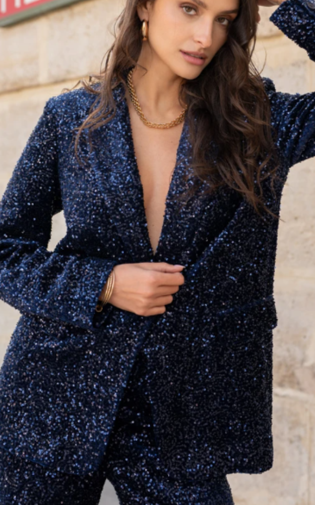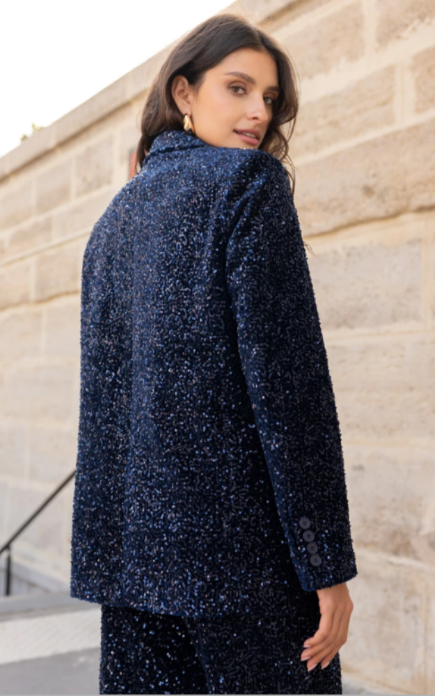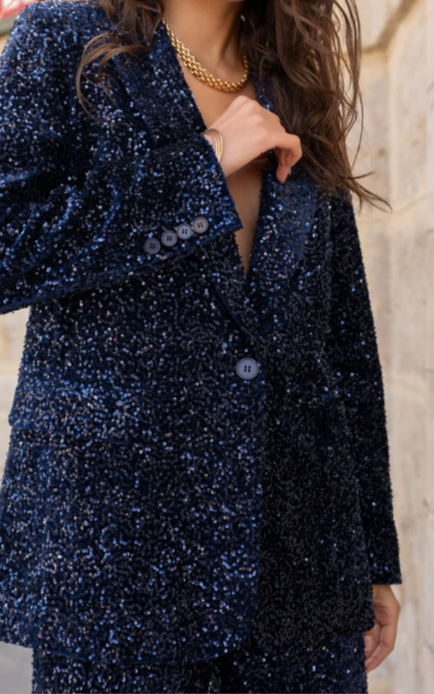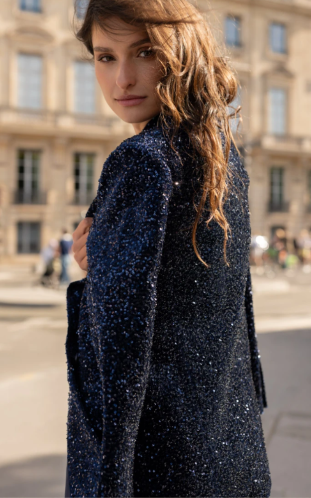 Il blazer Elisabeth in paillettes è un capo dal carattere deciso e luminoso, perfetto per rendere unico ogni look da sera. Il taglio dritto e strutturato valorizza la silhouette con eleganza, mentre il collo a revers dentellato e la chiusura a un bottone donano un’allure sofisticata e moderna. Le tasche con patta discrete aggiungono funzionalità senza compromettere la linea essenziale del capo.