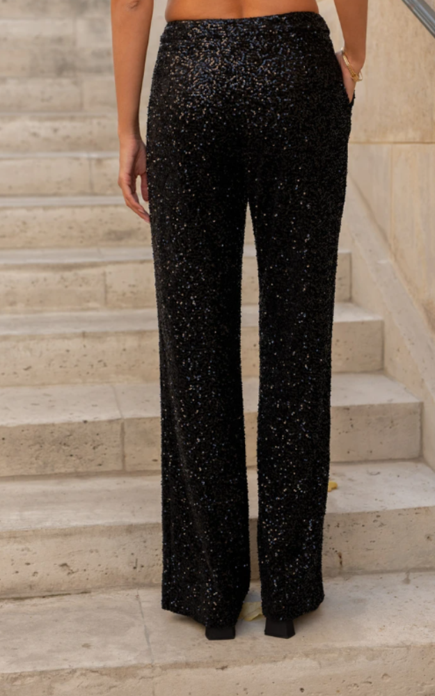 I pantaloni Elisabeth in paillettes borgogna sono un capo scenico e raffinato, pensato per chi desidera un look serale di forte impatto. Il taglio dritto e fluido slancia la figura con eleganza, mentre la vita alta con passanti per cintura offre comfort e versatilità nello styling.