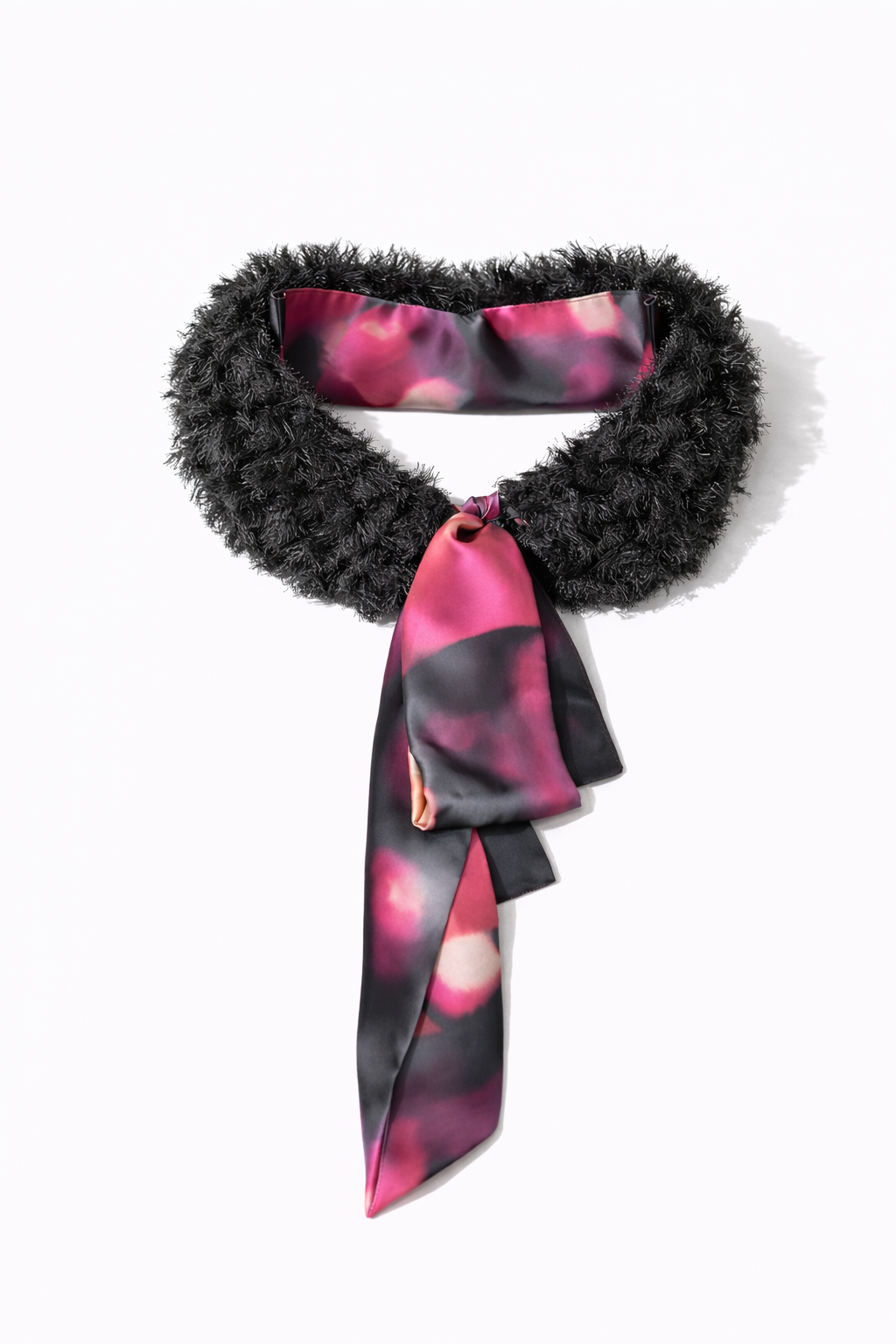 A colorful and bright accessory, a necklace with long silk ribbons. An imaginative detail for a special touch. Wear it over sweaters, cardigans or dresses to give a change to even the most casual looks.