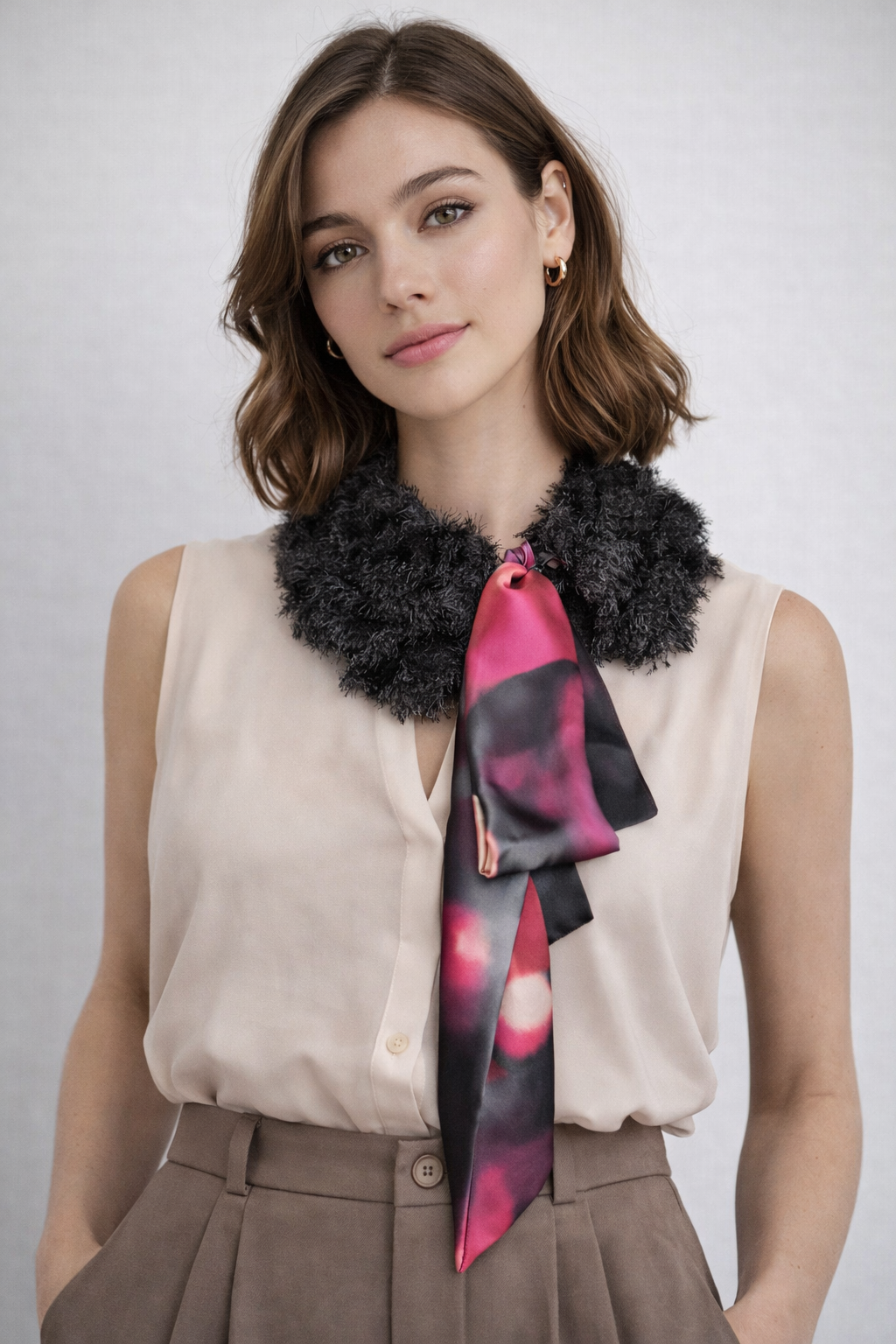 Collar: Outside 100% viscose Inside: 100% silk