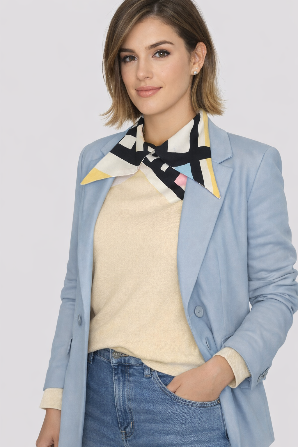 Bold silk lines for the Mika collar offer a new version of this season's collar. Perfect for adding a feminine touch to knitwear or a plain top, a separate collar is the practical way to enrich an outfit and offer endless styling options.