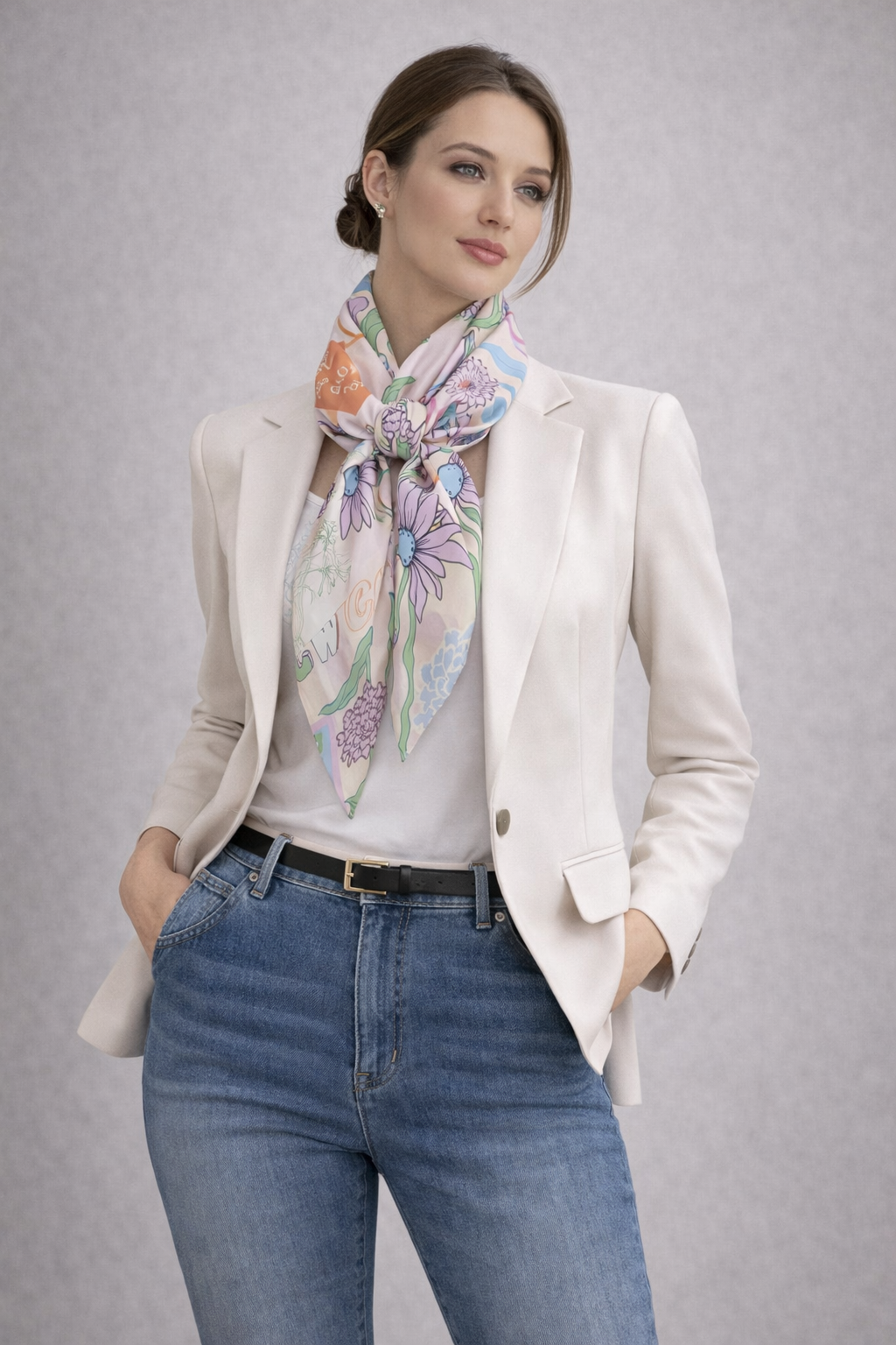 A silk print made with warm, playful and fun designs and colors, capable of attracting attention and representing the distinctive accessory of an entire look. Soft and light, to discover a new way to be used every day. Perfect for mothers and daughters.