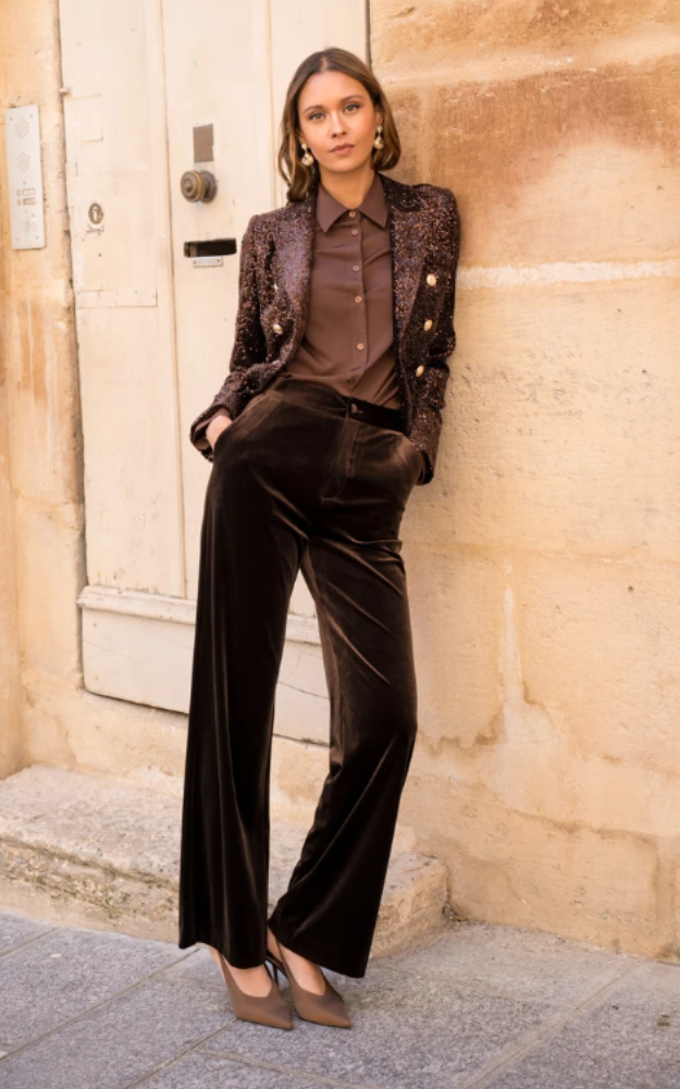 Un capo deciso e femminile che può essere abbinato ai pantaloni Elisabeth per un completo elegante e moderno.