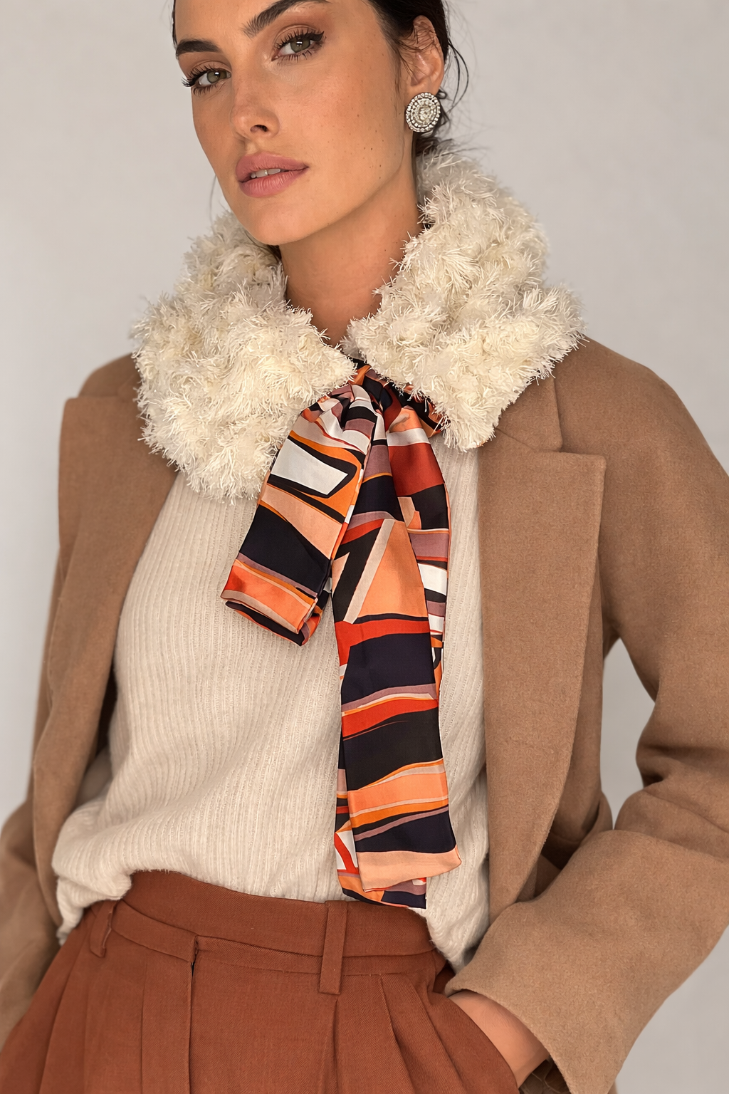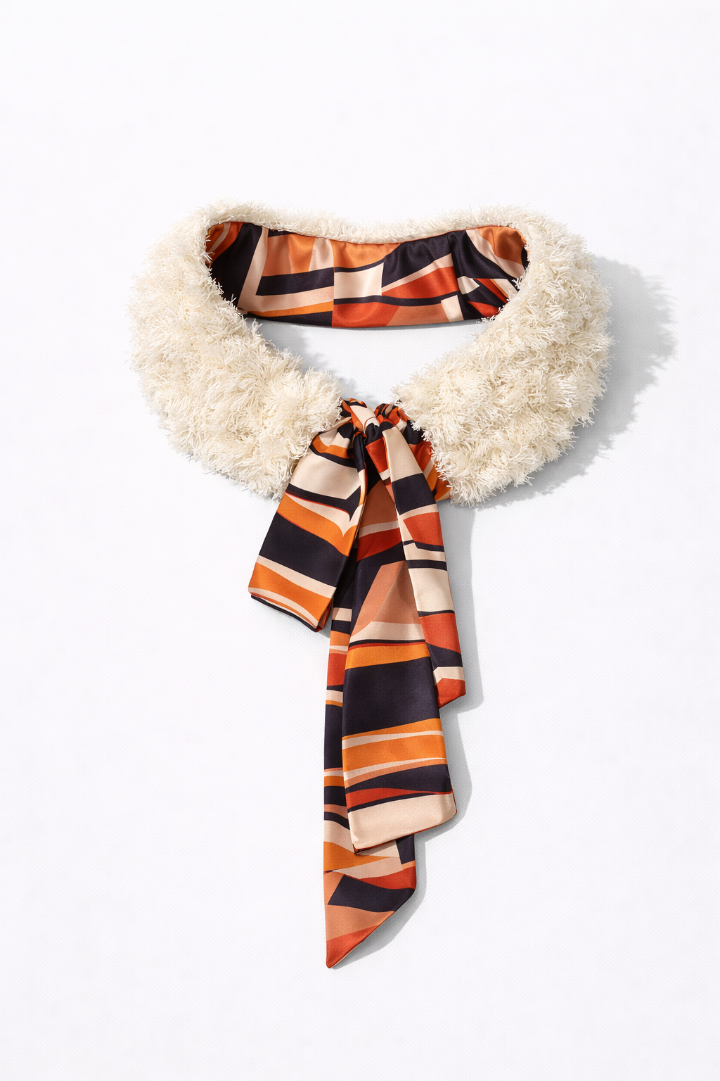 A colorful and bright accessory, a necklace with long silk ribbons. An imaginative detail for a special touch. Wear it over sweaters, cardigans or dresses to give a change to even the most casual looks.